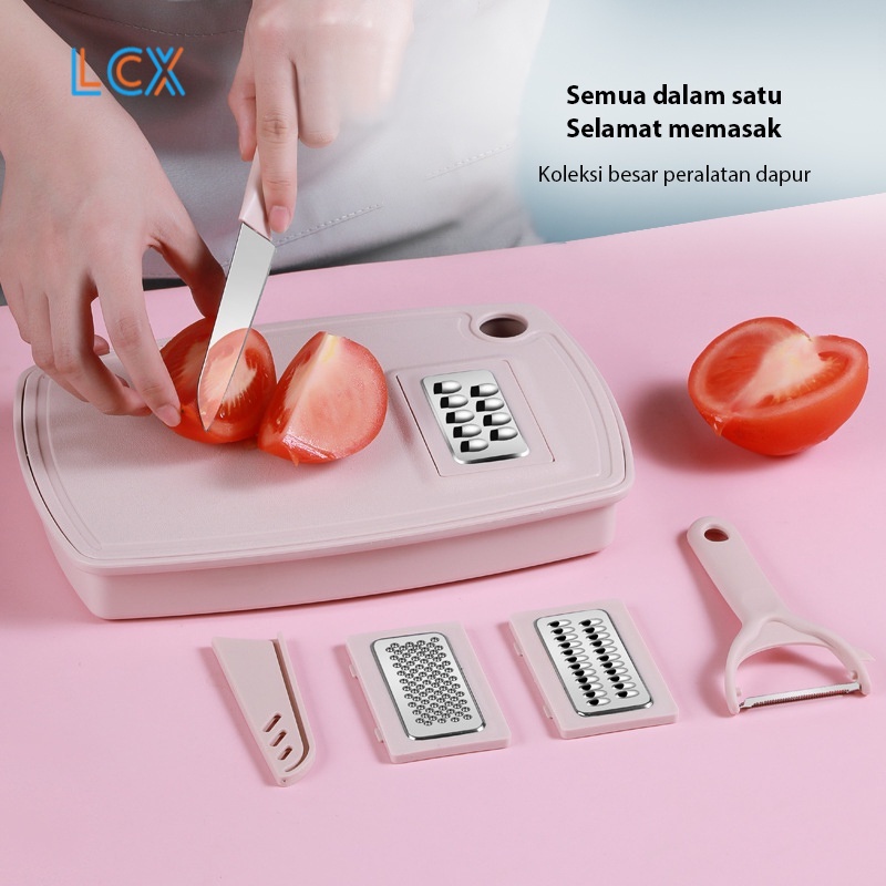 FREE ONGKIR Pisau Set Talenan Lipat Multifungsi 7In1 Multifungsi Pengiris Parutan Chopper Kitchen Serbaguna