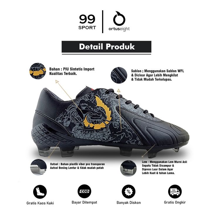 SEPATU SEPAK BOLA PRIA ORTUSEIGHT FORTE RYU FG HITAM GOLD BERKUALITAS ORIGINAL BEST SELLER MURAH TANPA DP 0 2025