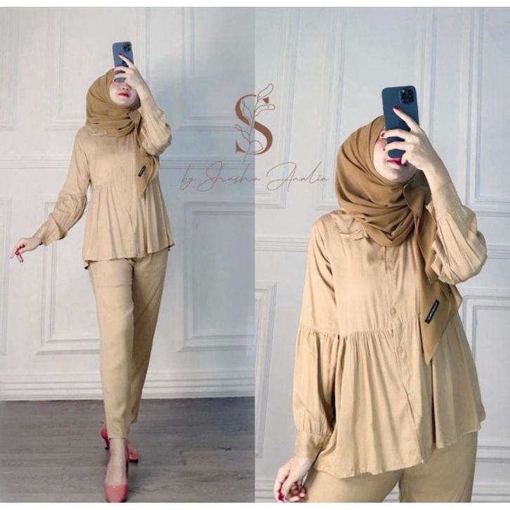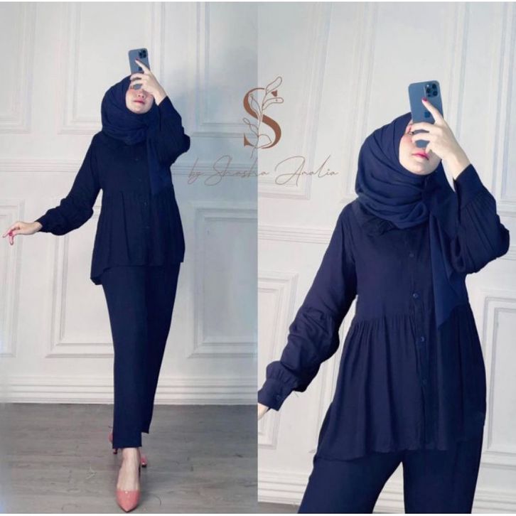 One Set Amanda Rayon Tebal Setelan Celana Dan Baju Cewek Polos Stelan Panjang Cocok Untuk Ootd Hijab Style Muslimah