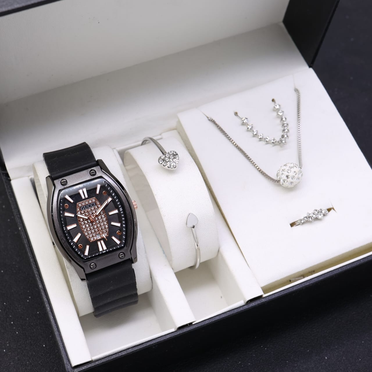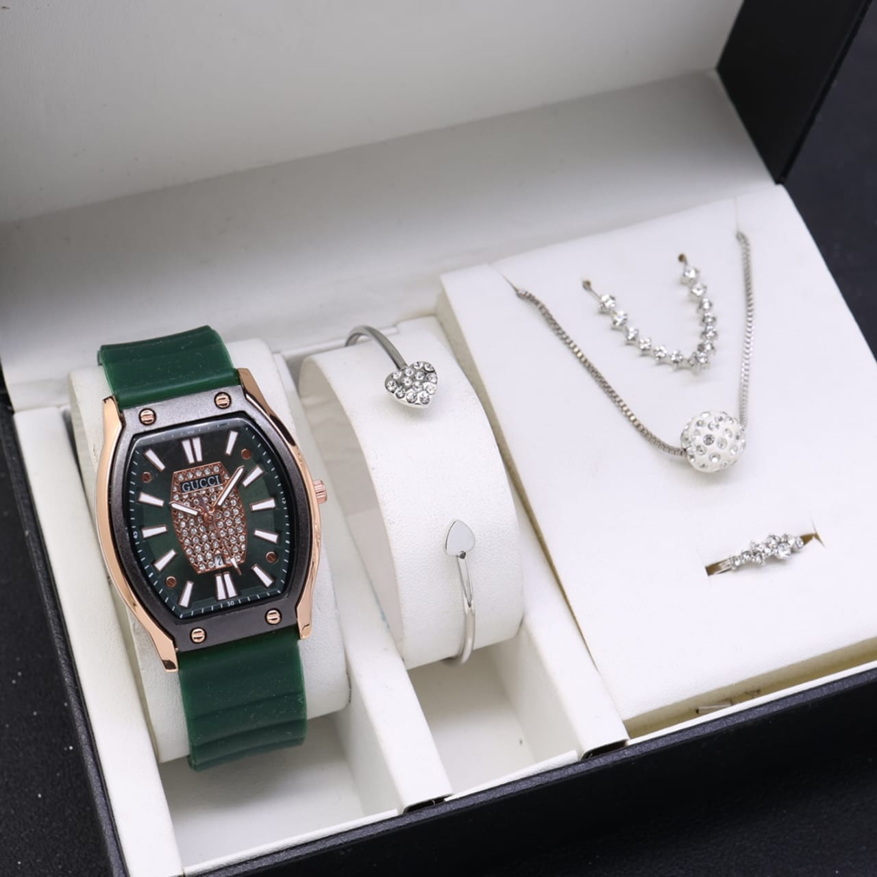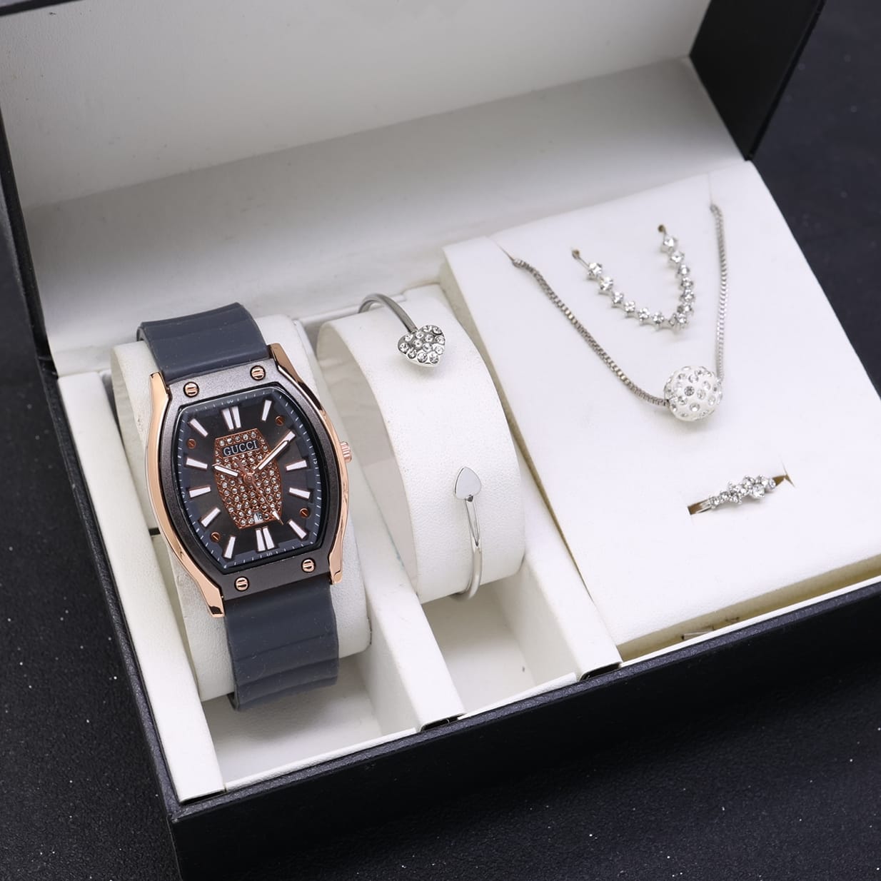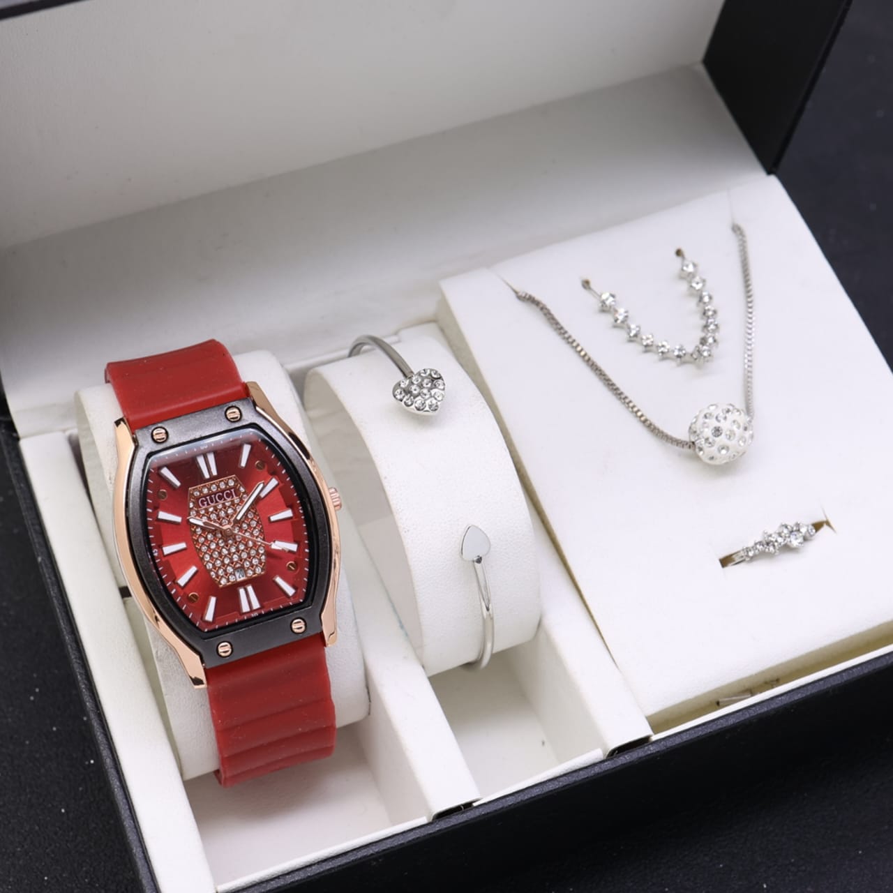 New!!! Grosiran Jam Tangan Gucci + ACC L3296 Tanggal Aktif Tali Rubber - Jam Tangan Wanita Include Box Original