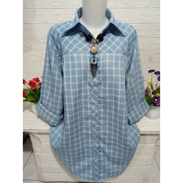 Blus Krah baju atasan wanita bahan katun lengan panjang