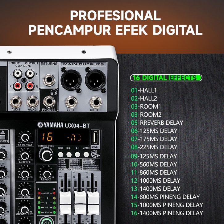 YAMAHA UX04-BT UX06-BT UX08-BT MIXER AUDIO 4 6 8 CHANNEL MIKSER SOUND SYSTEM MURAH 16 DSP REVERB EFFECT BLUETOOTH 3-BAND