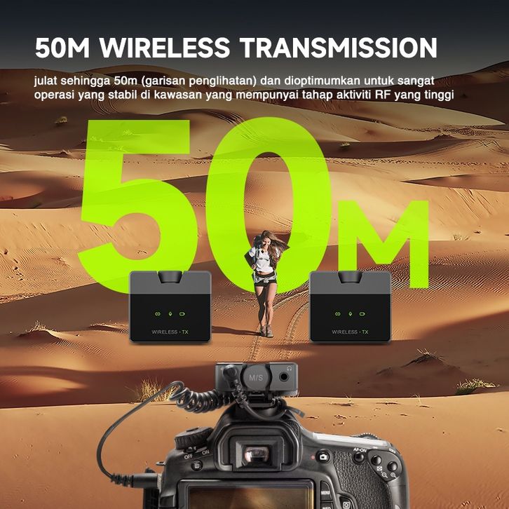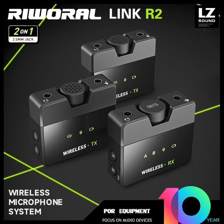 RIWORAL R2 MIC WIRELESS LAVALIER MICROPHONE REKAMAN SUARA JERNIH MIKROFON LANGSUNG NOISE REDUCTION MODE PLUG AND PLAY ON