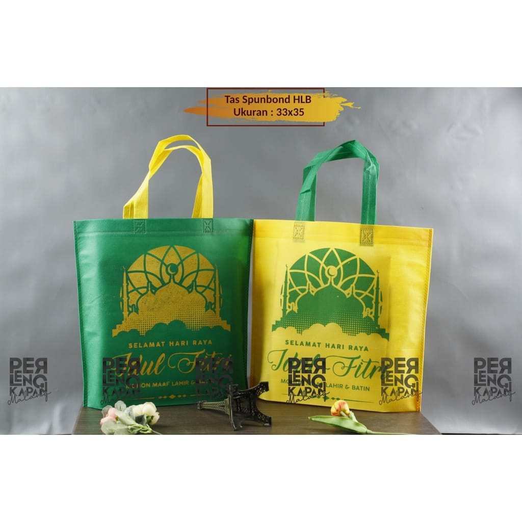 TAS SPUNBOND IDUL FITRI LIPAT BAWAH UKURAN 35X33X8 CM / TAS GOODIE BAG LEBARAN BINGKISAN PARCEL MURAH