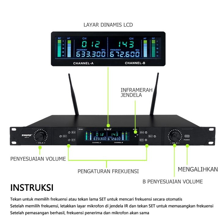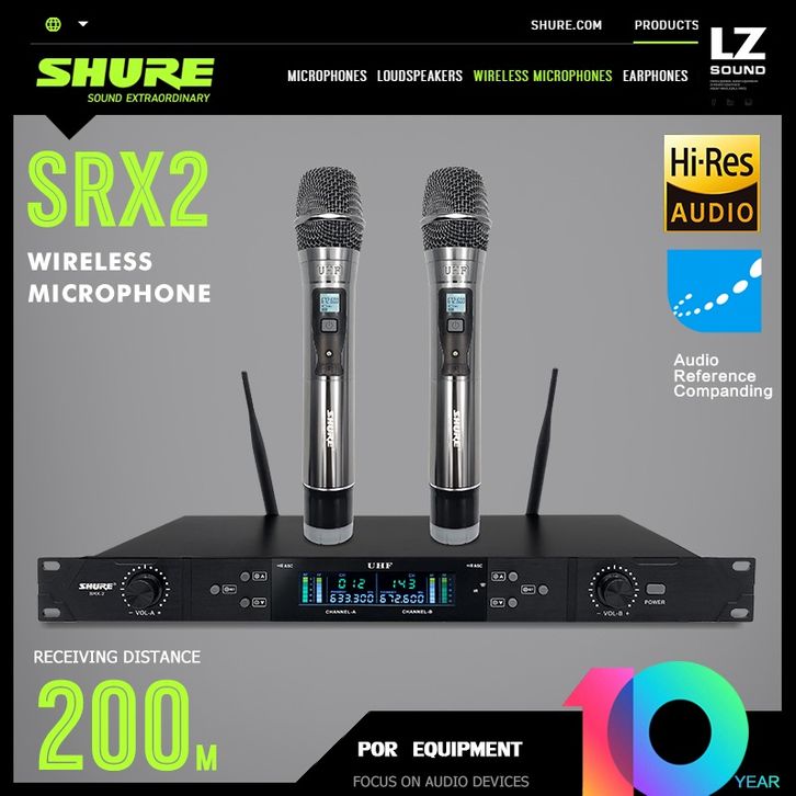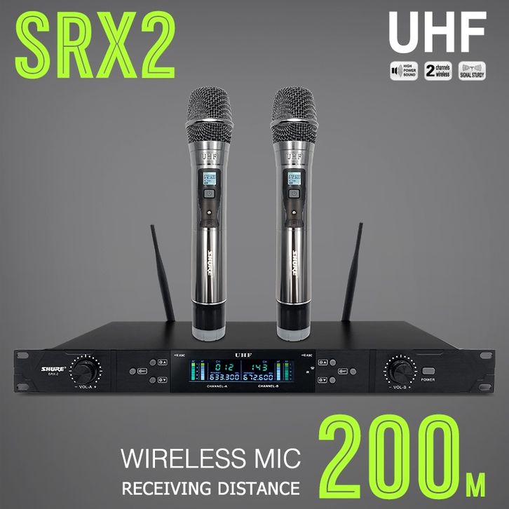 SHURE SRX-2 MIKROFON NIRKABEL PROFESIONAL UHF MIC BAHAN LOGAM FREKUENSI DAPAT DIUBAH, MENERIMA JARAK DALAM 200 METER GRA