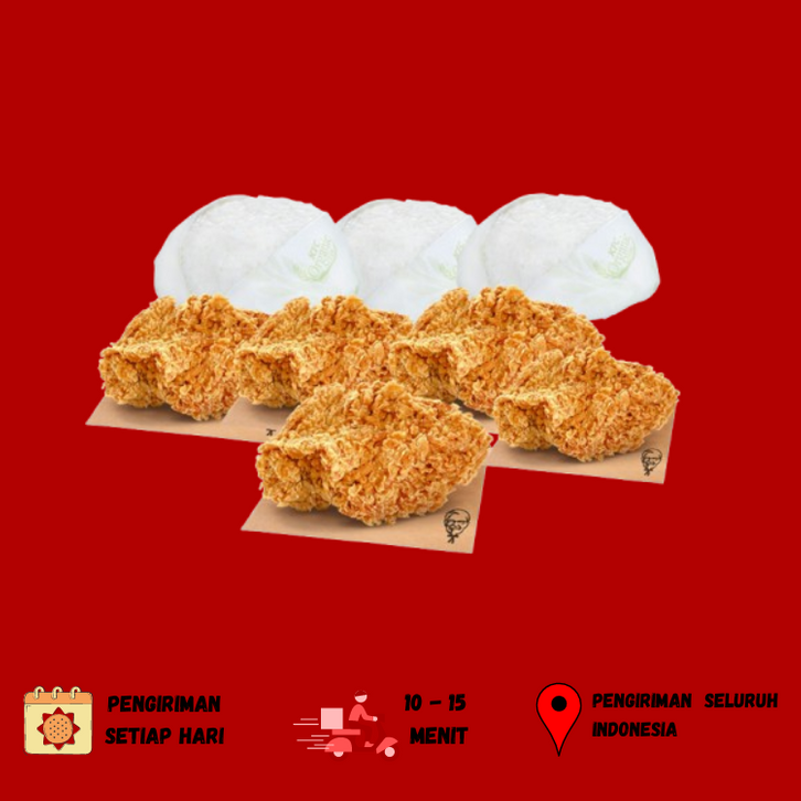 2 Wingette + 2 Drumette + 1 nasi + 1Lovly+1don egg, 5 Chiken + 3 Rice