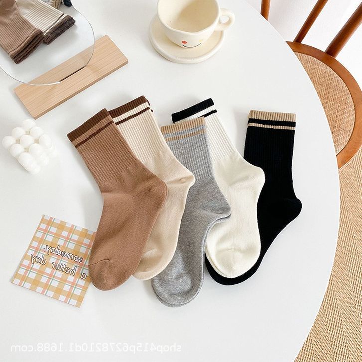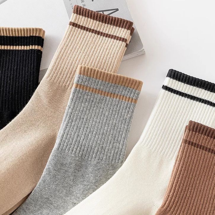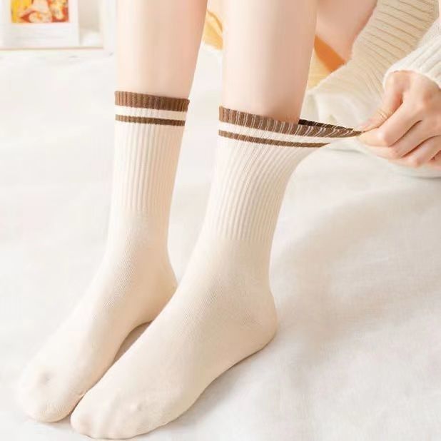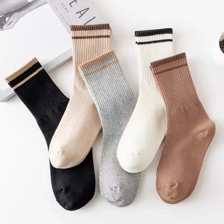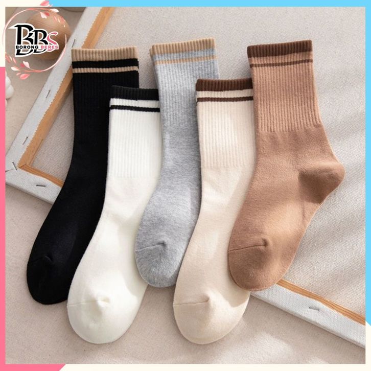 [5]Kaos Kaki Panjang Unisex 6955 Kaos Kaki Polos 2 Garis Pria Wanita Socks Korean Fashion Kaus Kaki Trendi Musim Dingin