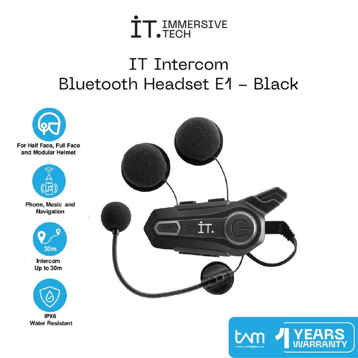 INTERCOM HELM BLUETOOTH HEADSET E1-BLACK FREE ONGKIR