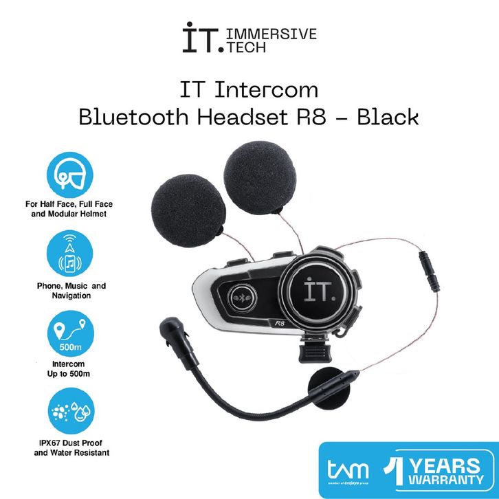 INTERCOM BLUETOOTH HEADSET R8 -BLACK FREE ONGKIR