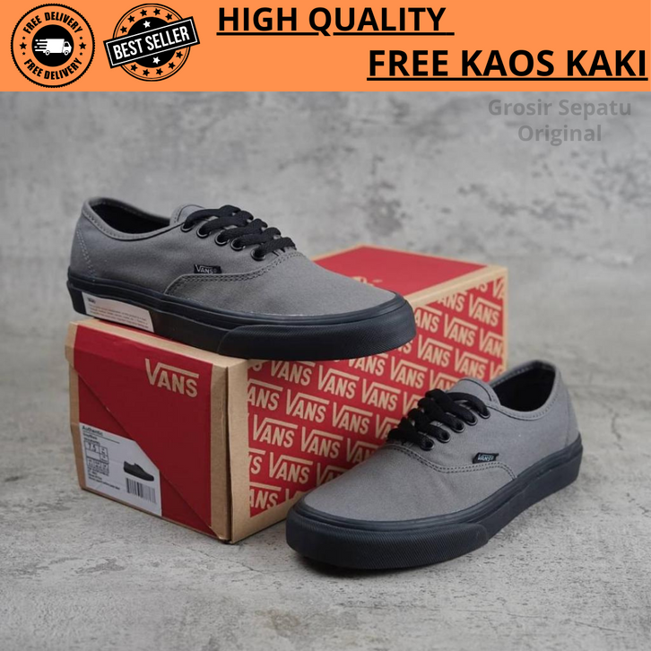 SEPATU PRIA VANS AUTHENTIC CLASSIC GREY BLACK HIGH QUALITY BNIB