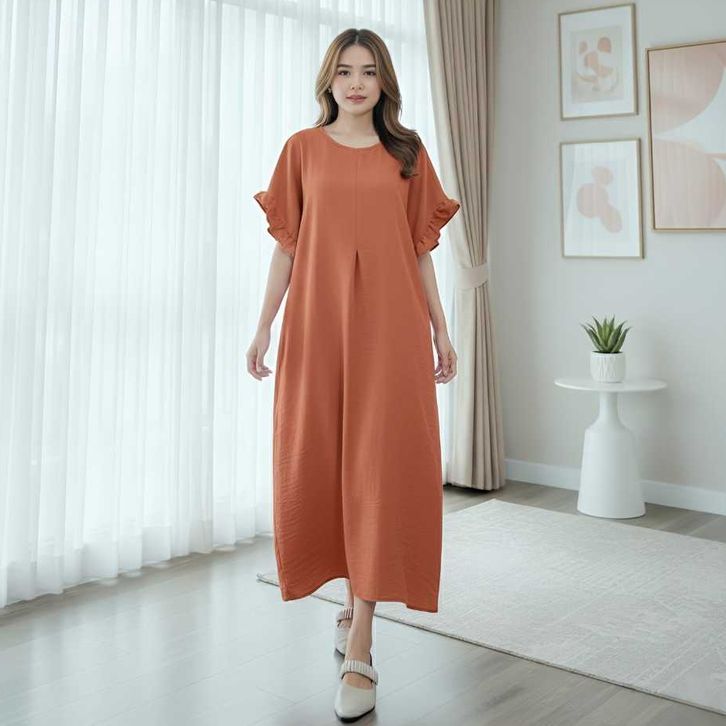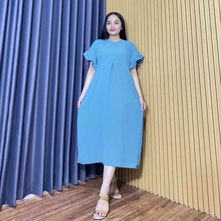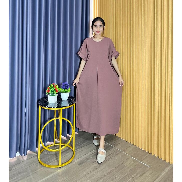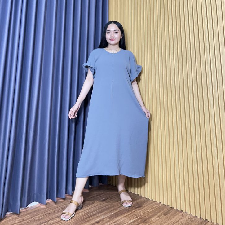 [Star] Azzura Long Daster Semata Kaki Crinkle Airflow