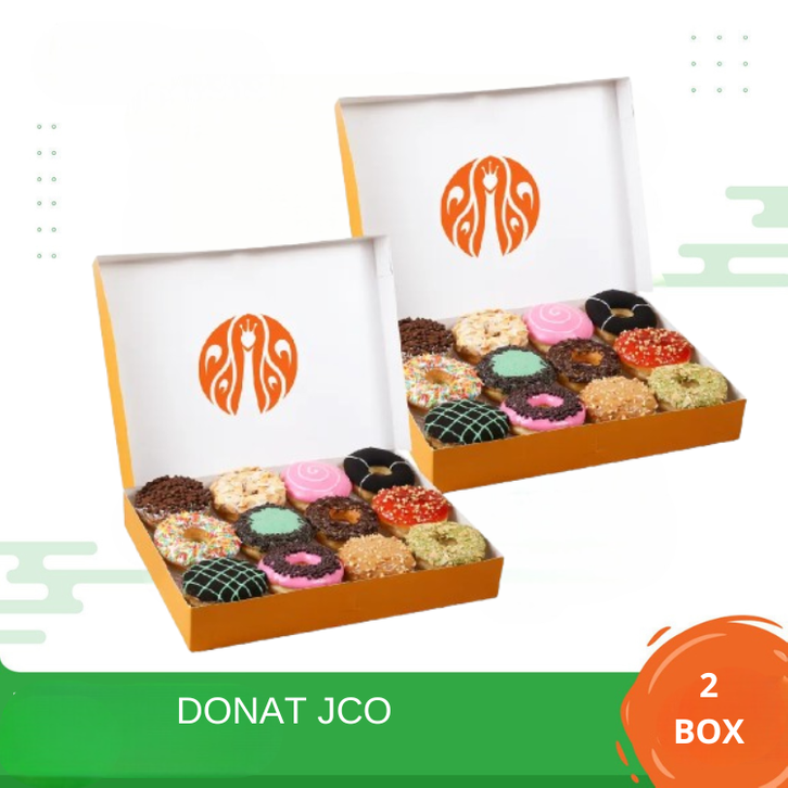 Donuts 1 Lusin, Donuts ½ Lusin, Donuts 2 Lusin, J.Pops 2 Lusin, JPops DIY, 1/2 Lusin J.Clubs, JCronut, J.Cool To Go, Family Treats C, Family Treats D, Mix Package, Mix Combo Treats, 1 Lusin J.Clubs, Iced Lemon Lime Coffee (Large), Iced Lychee Coffee (Large), Iced Americano Classic (Large), Hot Americano Classic (Large), Iced Cappuccino (Large), Hot Cappuccino (Large), Iced Italian Latte (Large), Iced Avocado Latte (Large), Frappe Avocado Latte (Large), Iced Butterscotch Salt (Large), Iced Aren Caramel (Large), Frappe Black Forest (Large), Iced Swiss Chocolate (Large), Iced Matcha Latte (Large), Iced Thai Latte (Large), Iced Americano 1L, Iced Latte 1L, Iced Jcoccino 1L, Iced Brown Sugar 1L, Iced Thai Tea 1L, Iced Chocolate 1L, Iced Mocha 1L, Iced Lemon Tea 1L, Black Coffee, Vanilla Latte, Brown Sugar, JCO Juice Orange, JCO Juice Apple, JCO Juice Mix Fruit, Mug Coffee Time, Eco Bag Besar