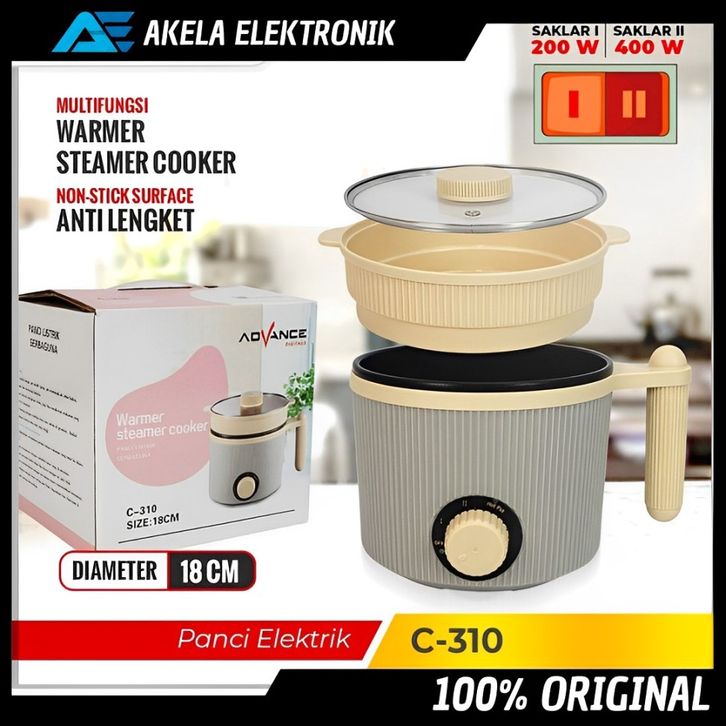 ADVANCE Panci Listrik Multifungsi 200watt (Bisa Masak Nasi) 1.8l Kukusan Steamer Garansi 1 Tahun Best Seller Termurah