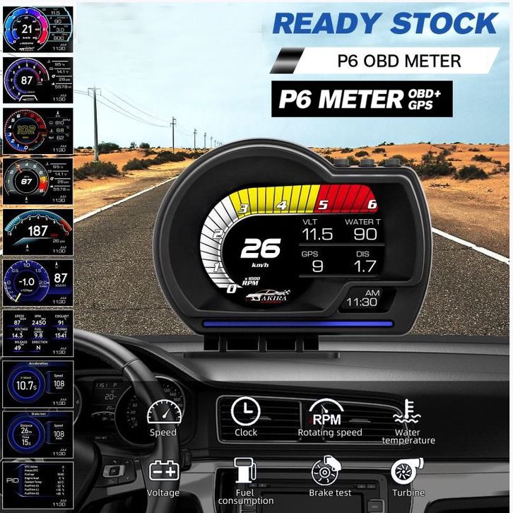 P6 SMART CAR LAYAR DISPLAY HD OBD+GPS SMART GAUGE FOR HONDA TOYOTA DAIHATSU KODE KESALAHAN BISA DIHAPUS FREE ONGKIR