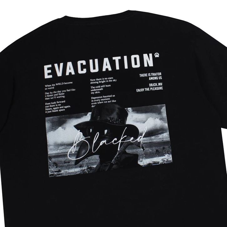 KAOS LAKI LAKI DEWASA TSHIRT EVACUATION BLACK TEES KAOS COWOK OVERSIZE KAOS DISTRO PRIA ORIGINAL