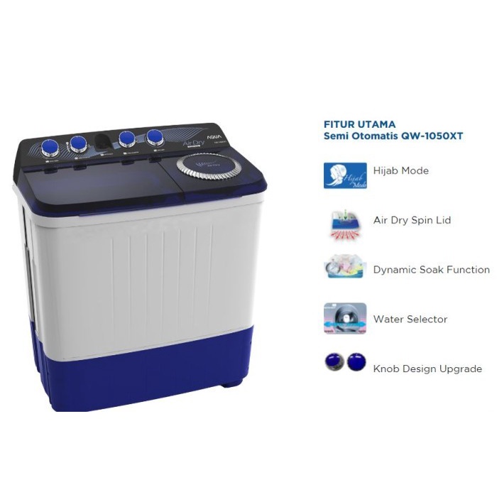 AQUA MESIN CUCI 2 TABUNG 10KG QW-1050XT / QW1050XT HIJAB SERIES ( GARANSI RESMI ) GRATIS ONGKIR