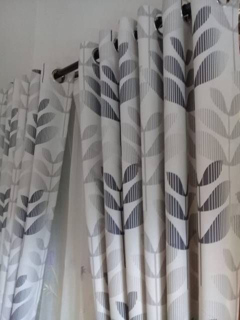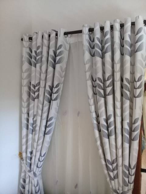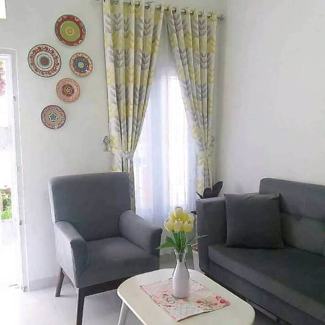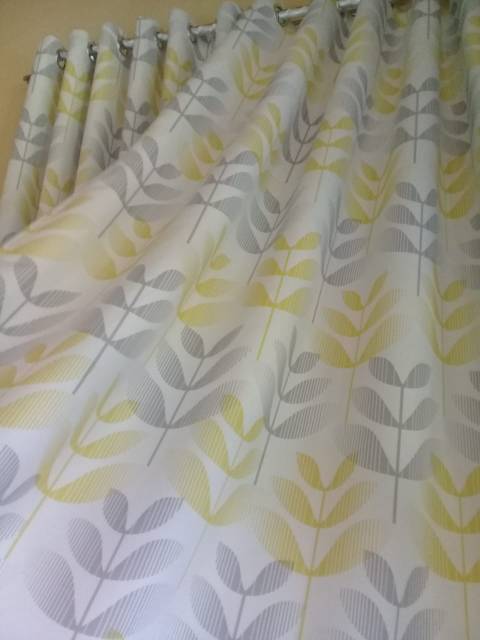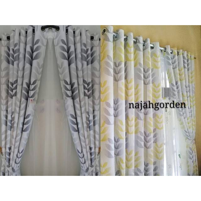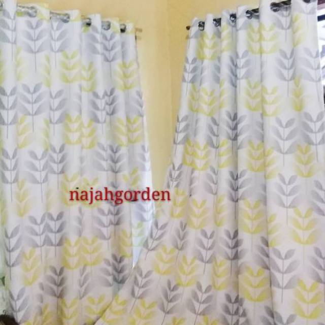 FREE ONGKIR gorden blackout motif Amanda abu dan kuning jendela pintu semokring 12 lubang 6 gelembung motif