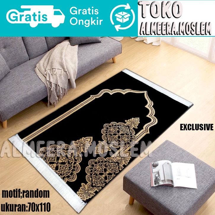 Sajadah Turki Turky Exclusive Kiswah Hitam Tebal Halus - Perlengkapan Shalat - Pakaian Musli - Sajadah Turky Free Ongkir