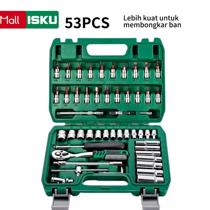 ISKU Kunci Sok Set 53pcs Kunci Shock Set Lengkap Kunci Mata Sok Set Socket (1/4 ") Full TOOL KIT 20Pc Kunci Mata Shock