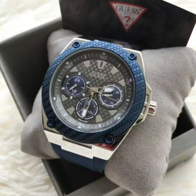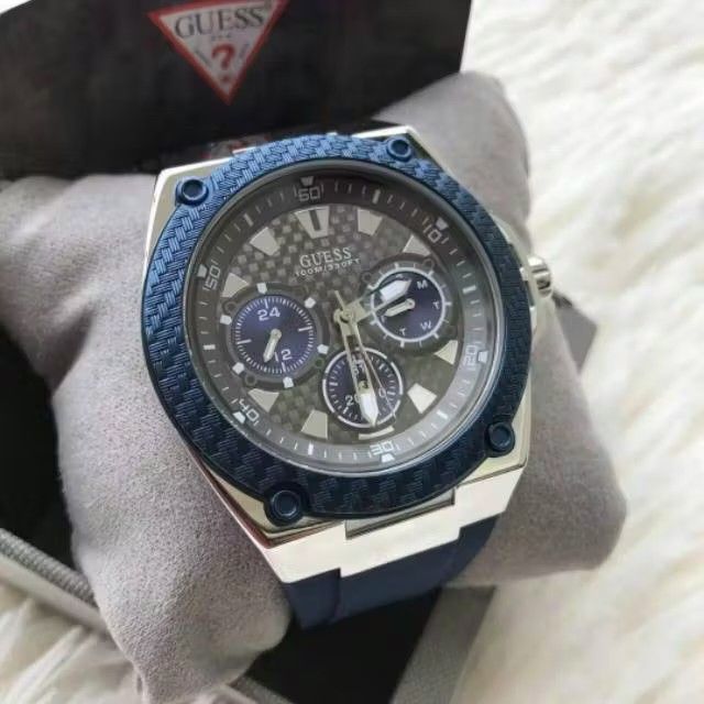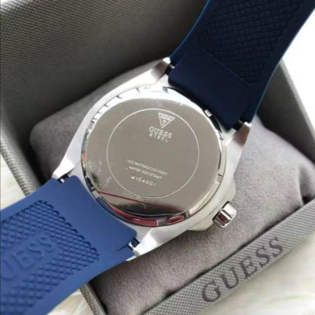 JAM TANGAN PRIA GUESS W1049G1 SILVER BLUE RUBBER ORIGINAL-FREE ONGKIR-JAM TANGAN TERMURAH-TERLARIS-BEST SELL