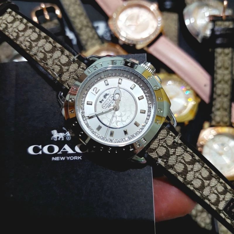 JAM TANGAN WANITA COACH Boyfriend SIGNATURE SILVER WHITE LEATHER - FREE BOX FREE ONGKIR