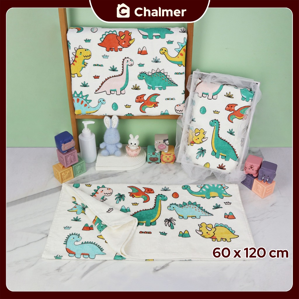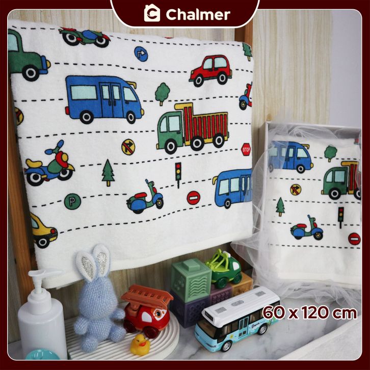 Handuk Bayi Chalmer Ukuran 60x120cm Handuk Bayi Lembut Print Anak Karakter