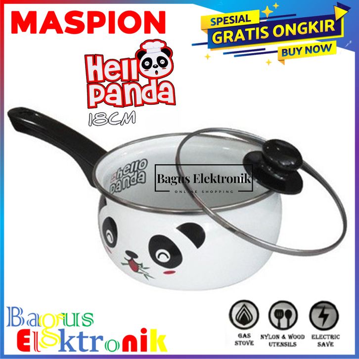 Maspion Panci Enamel Hello Panda 18 cm | Maspion Panci Enamel Maspion ENA Hello Panda Saucepan With Glass Cover / Tutup