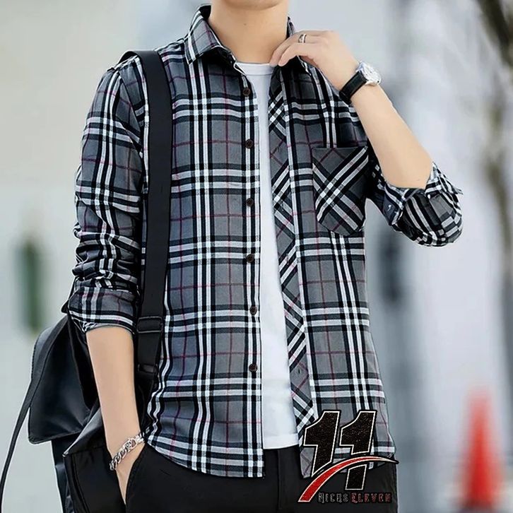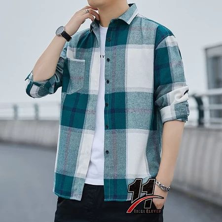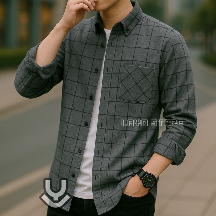 Kemeja Flanel Pria Lengan Panjang Kotak-Kotak