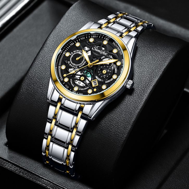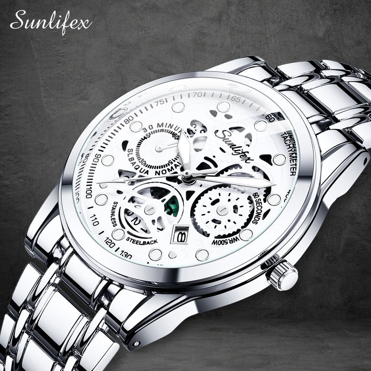 JAM TANGAN SUNLIFEX PRIA 9001 ORIGINAL DISPLAY KUARSA ANTI AIR TALI STAINLESS STEEL SANTAI MODE JAM TANGAN COWOK