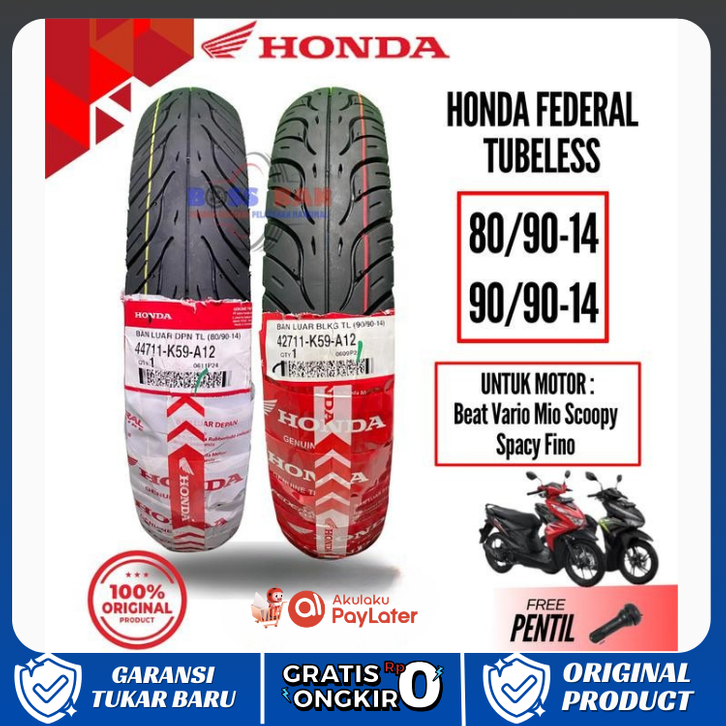 PAKET BAN TUBELESS MATIC HONDA FEDERAL 80/90 + 90/90 RING 14 | ORIGINAL TERLARIS | FREE PENTIL | DEPAN + BELAKANG