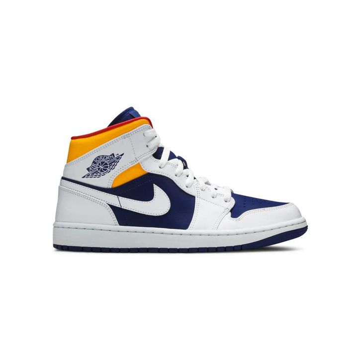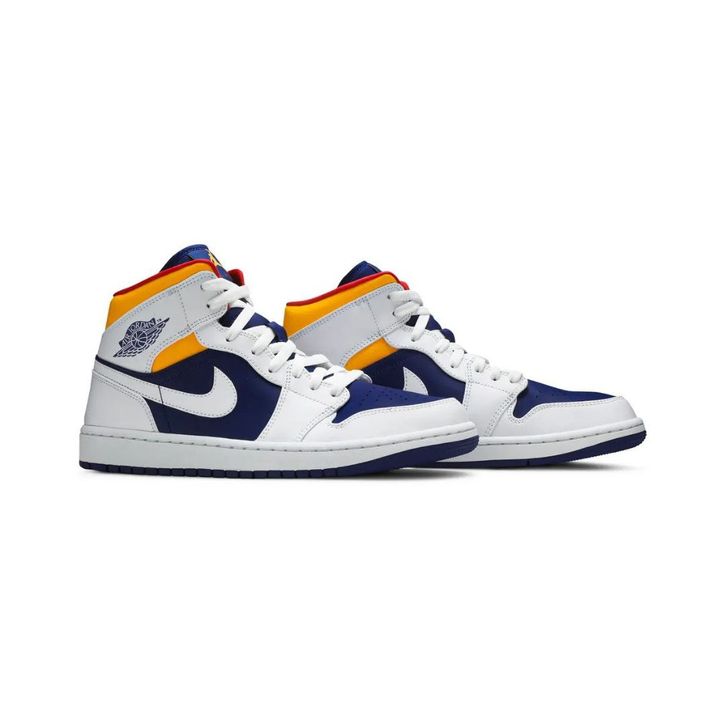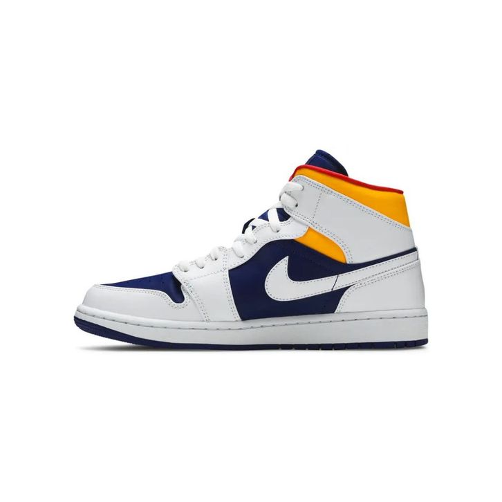 Nike Air Jordan 1 Mid Sepatu Pria White Deep Royal Blue Premium Original Bnib