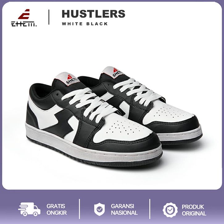 HUSTLERS WHITE BLACK | Salisstore - EHEM | Sepatu Sneakers Pria Wanita Casual Hitam Putih ORIGINAL