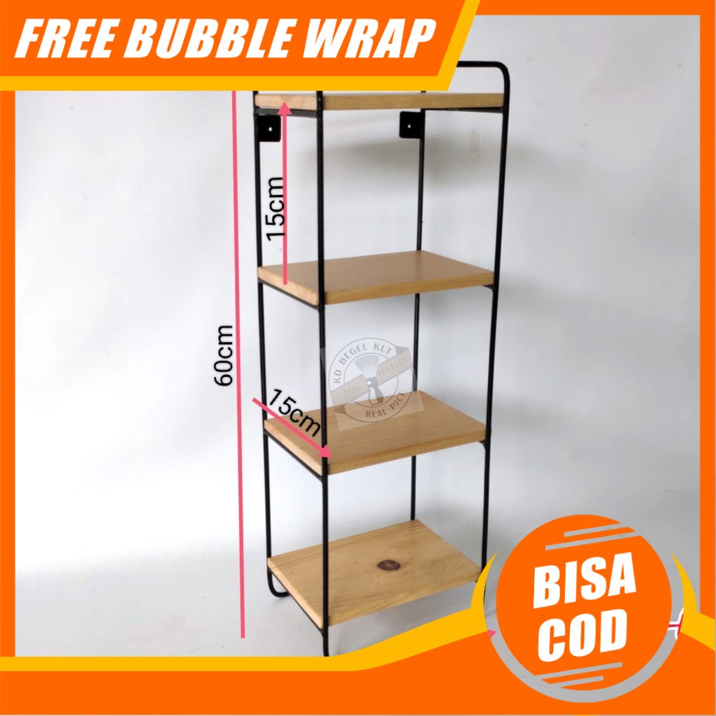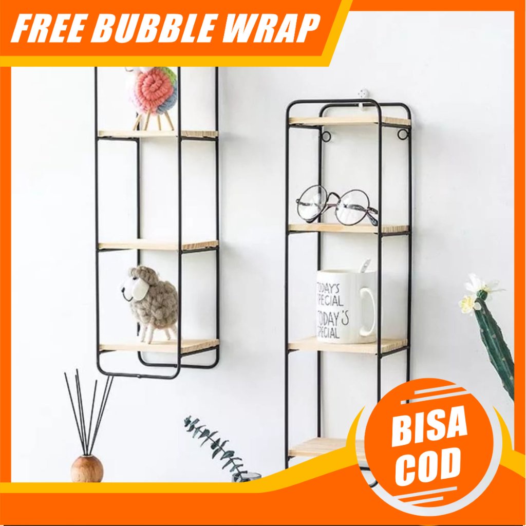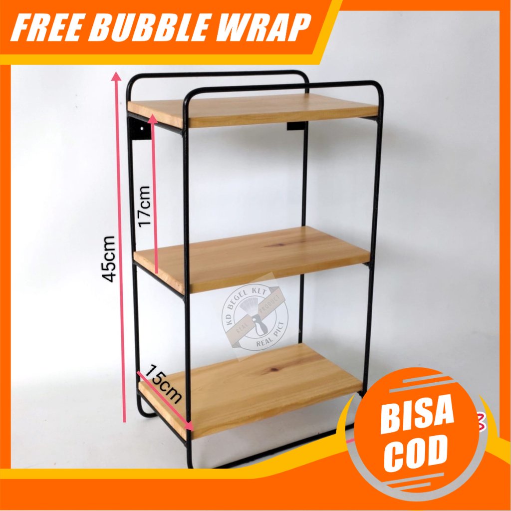 RAK GANTUNG INDUSTRIAL SUSUN DINDING DARI BESI DAN KAYU, UNTUK KAMAR TIDUR, KAMAR MANDI DAN KAMAR TAMU