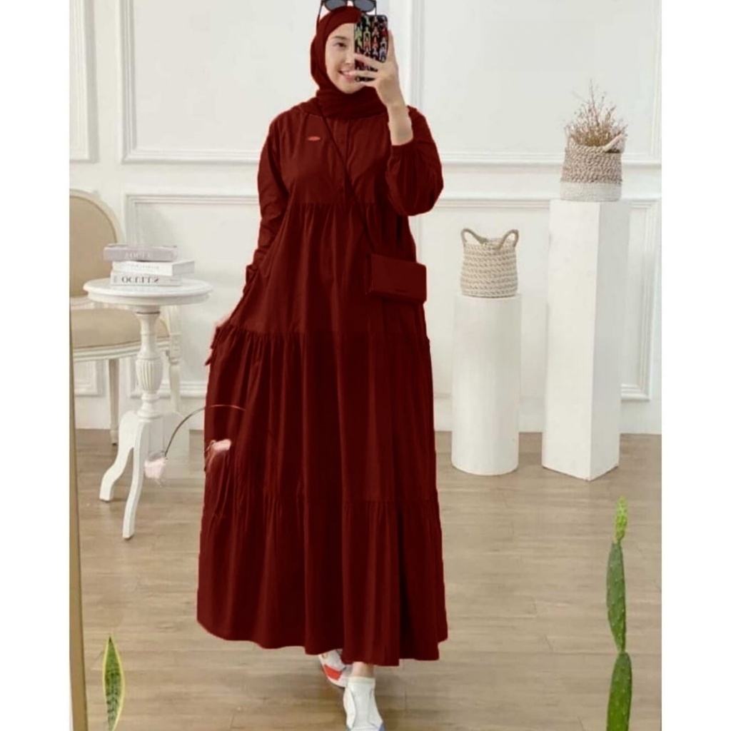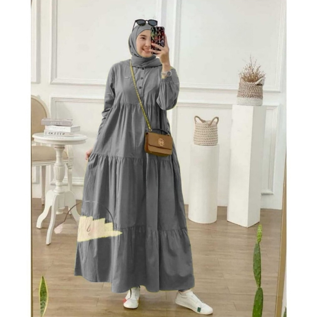 Dress Jumbo Kirania Midi Dress Bahan Katun Rayon Fashion Wanita Modern