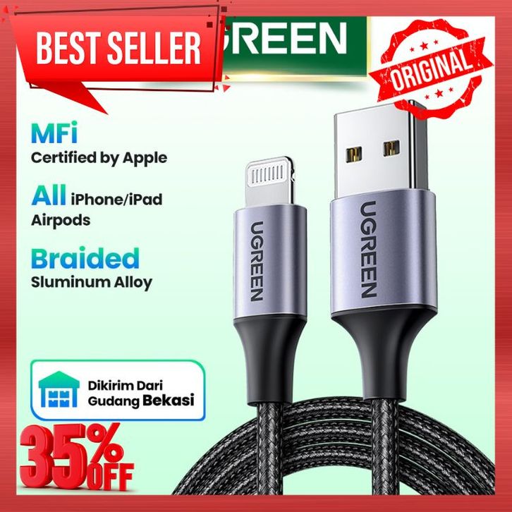 l【Stok Produk di Indonesia】Ugreen MFi Kabel Data / Charger USB 2.4A Fast Charging Untuk iPhone 14 13 pro Max 13 / 12 / 1