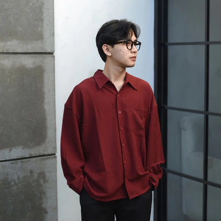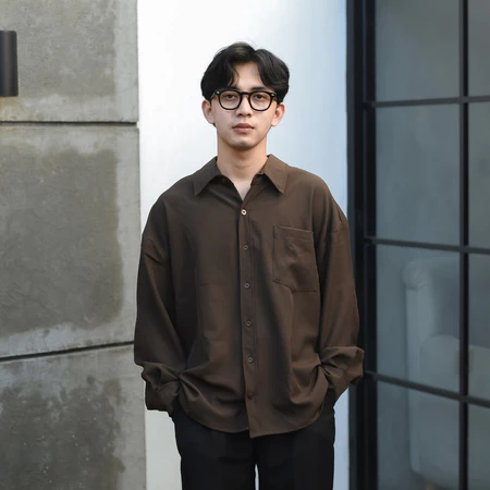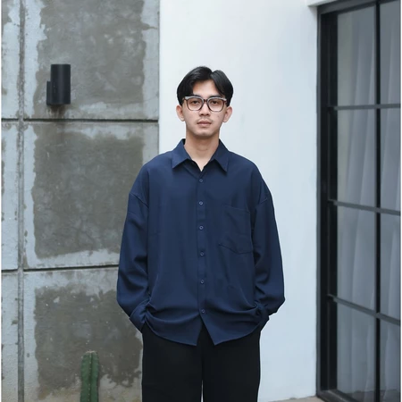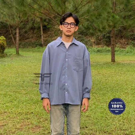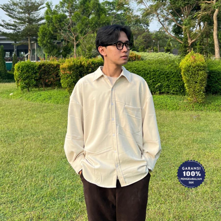 RoomFazza Kemeja Pria Lengan Panjang Oversize Polos Kasual Pria Cream Army Black Terbaru