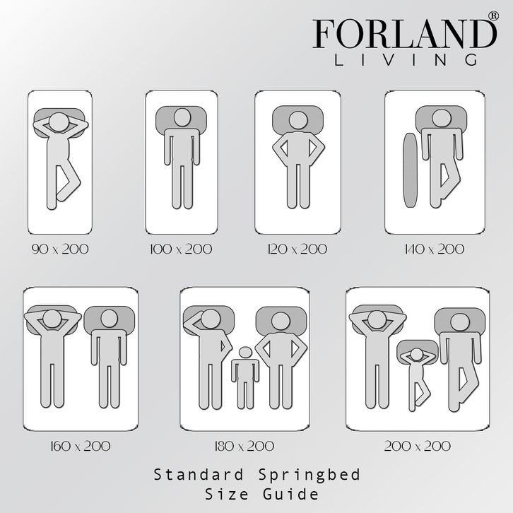 90 x 200, 100 x 200, 120 x 200, 140 x 200, 160 x 200, 180 x 200, 200 x 200
