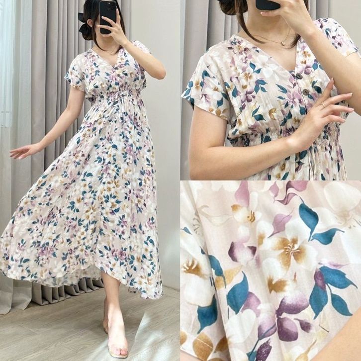 Dress Cewek Homewear Dress Busui Rayon Premium Allsize Midi Dress Cewek Lengan Pendek Motif Bunga Bunga Cantik