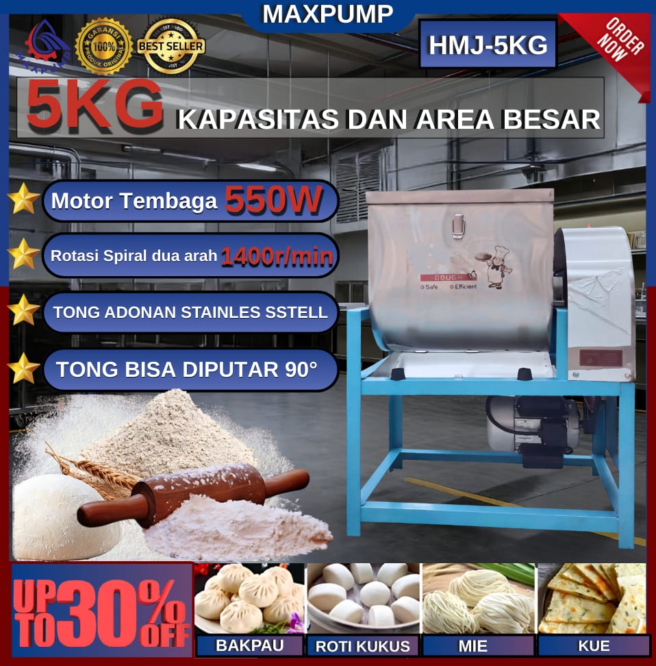 MAXPUMP Mesin Pengaduk Adonan Roti Terpung Mixer Kue 5kg Giling tepung Adonan