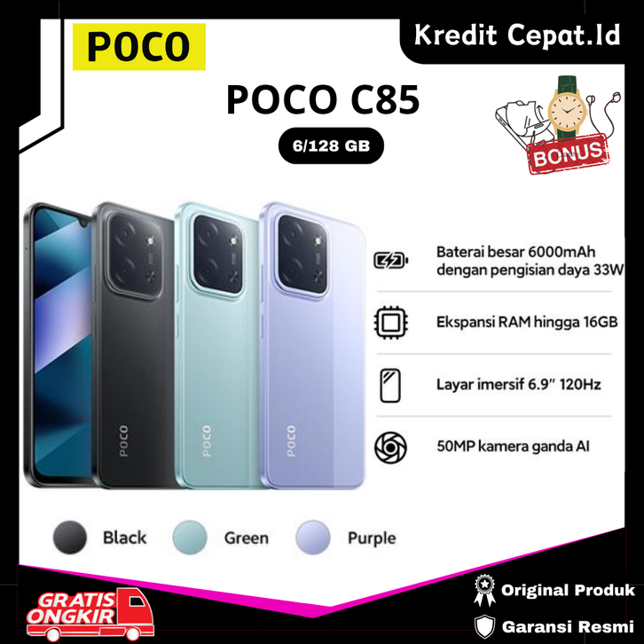 SEGEL POCO C85 RAM 6/128GB 6000mAh 33W Layar 6.9" 120Hz Garansi Resmi - Kredit Cepat.ID