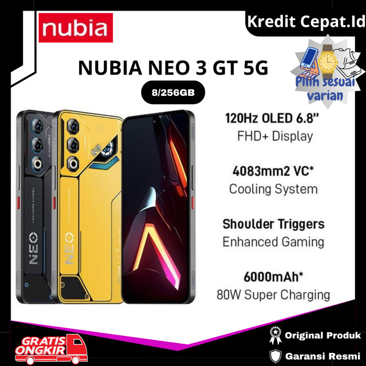Promo Handphone Gaming NUBIA NEO 3 GT 5G RAM 8GB+12GB/256GB 6000mAh Fast Charging 80W Garansi Resmi - Kredit Cepat.Id