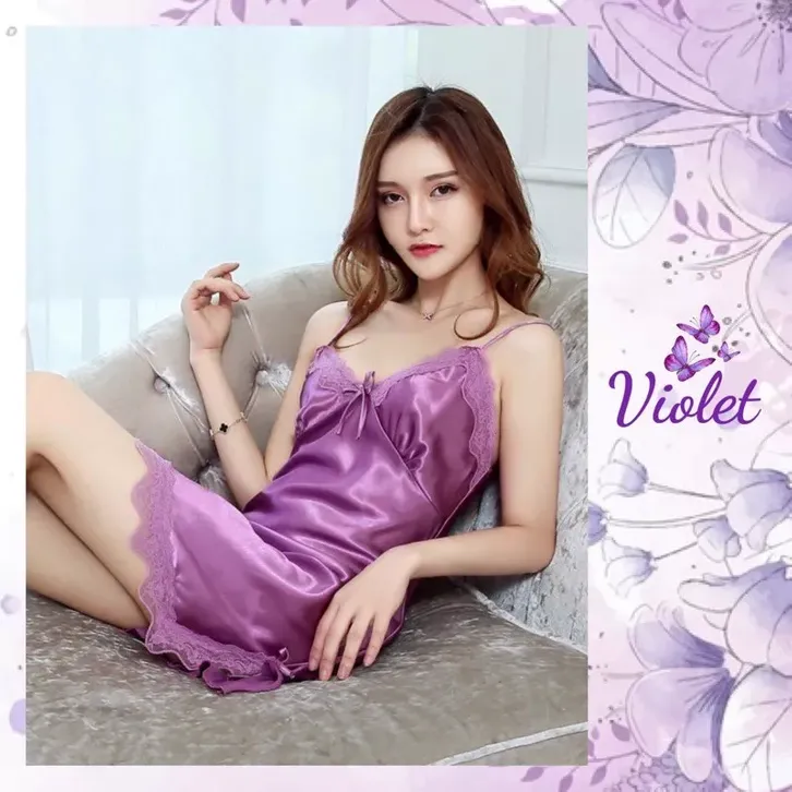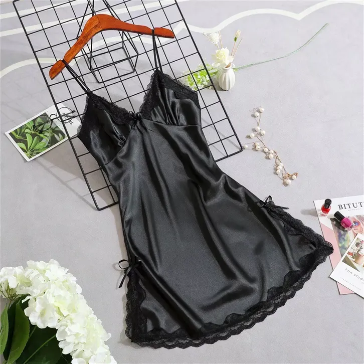Langerie Seksi Baju Tidur Renda Pakaian Dalam Wanita Bahan Satin 1072