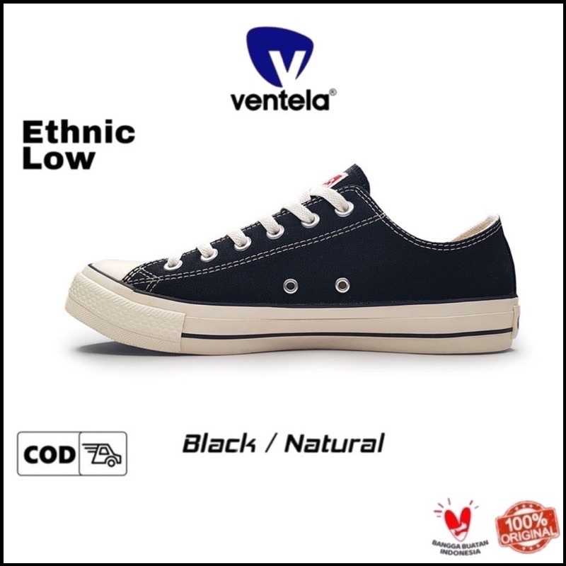 Free Ongkir Sepatu Ventela Ethnic Low Black Natural PRIA
