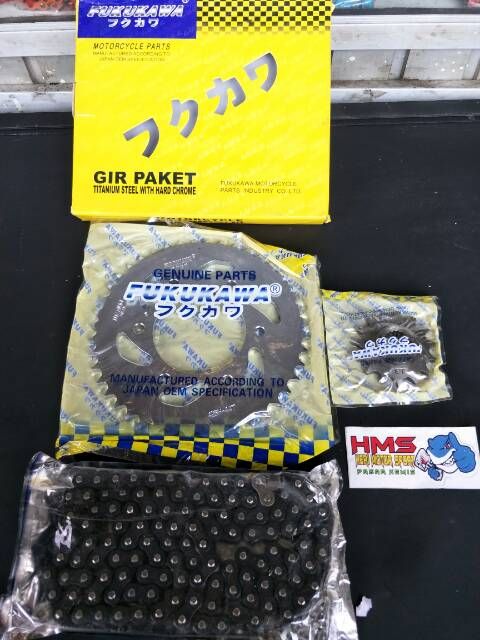 GIR - GEAR - GER SET RANTAI RANTE MOTOR JUPITER Z-VEGA R NEW-FIZR - VEGA -CRYPTON RANTAI 601D DAN HITAM STANDAR FUKUKAWA