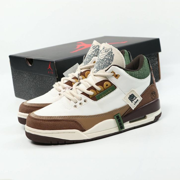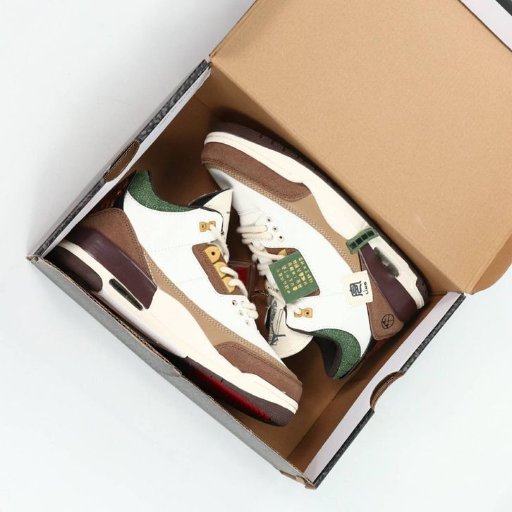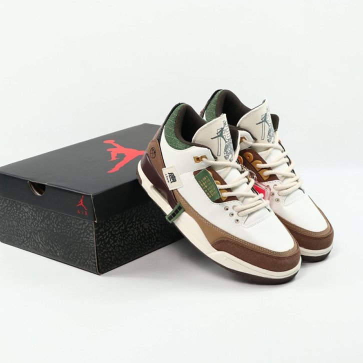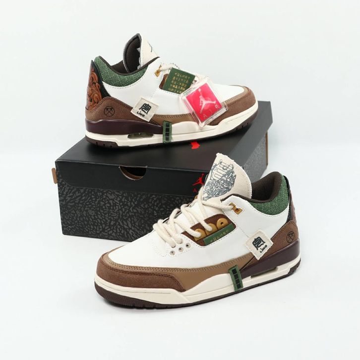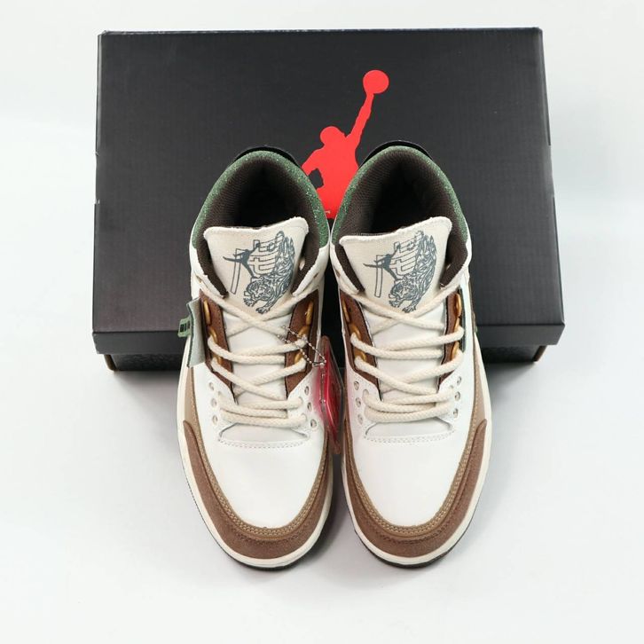 (Gratis Ongkir) Sepatu Pria Nike Air Jordan 3 Retro Year Of The Tiger Limited White Dark Brown Green Terbaru Alexshoes