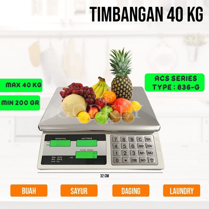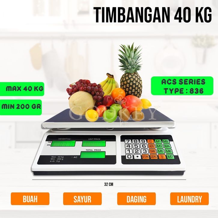 Timbangan Digital Elektronik Buah ACS 40 kg / 200 gr Duduk Laundry Telur Sembako Electronic Kitchen Computing Scale Doub