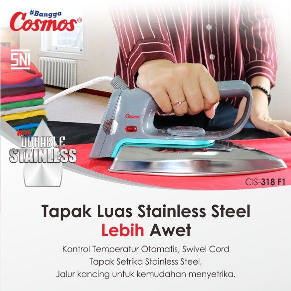 Cosmos Setrika Stainless Soleplate CIS-318 F1 FREE ONGKIR