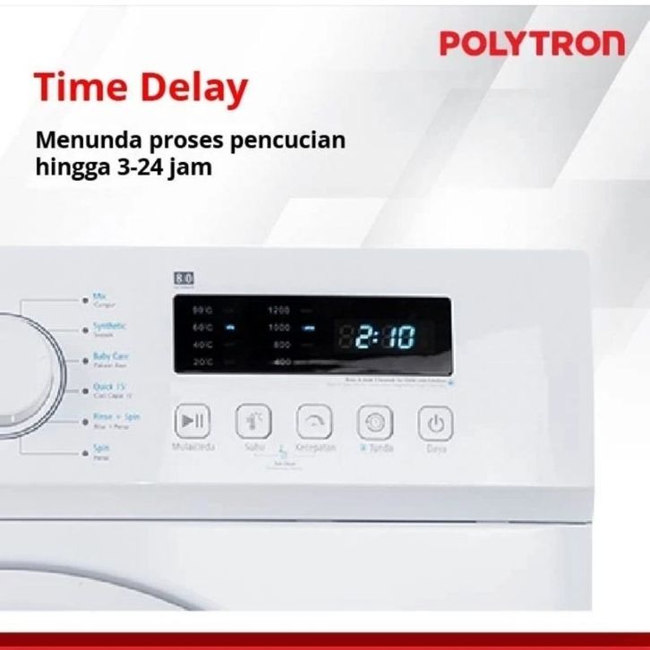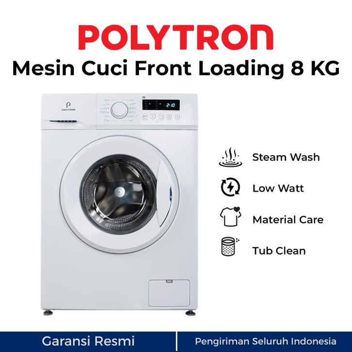 MESIN CUCI POLYTRON FRONT LOADING 8KG PFL 8051 1 TABUNG WONDER WASH LAUNDRY TURBO DRY PINTU DEPAN 8 7 KG 7KG POLITRON