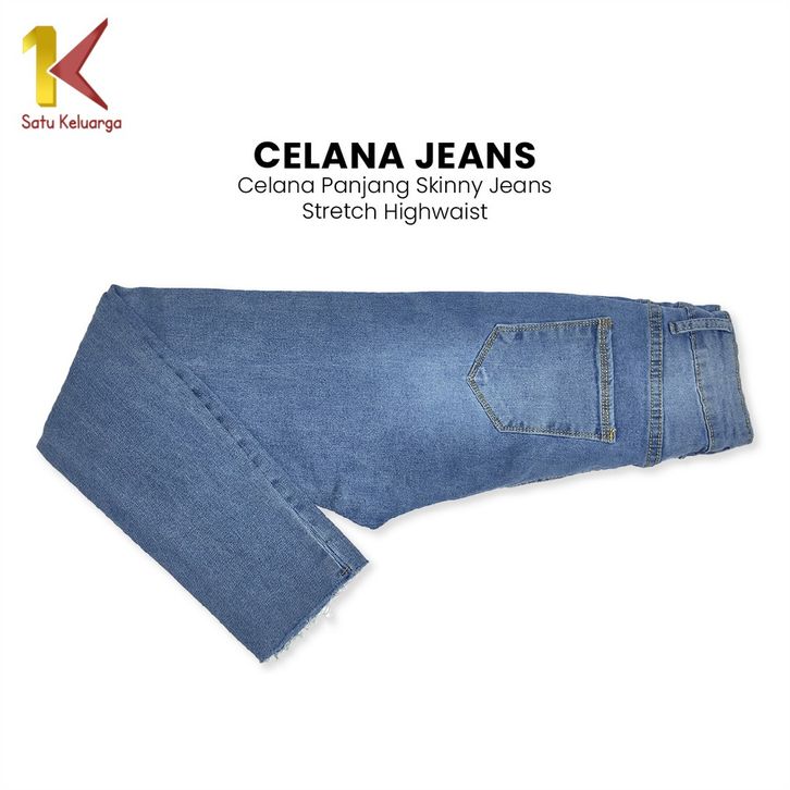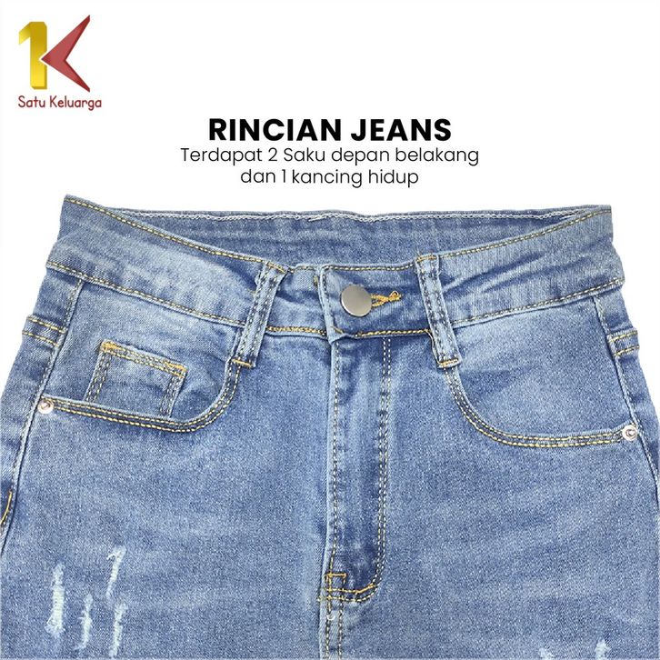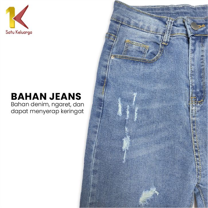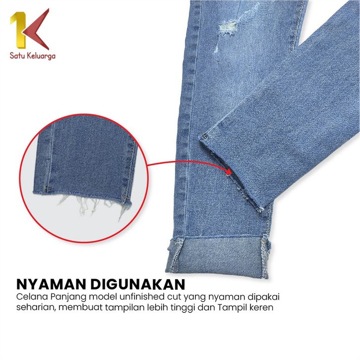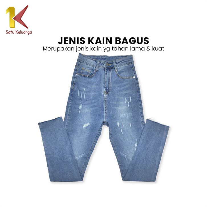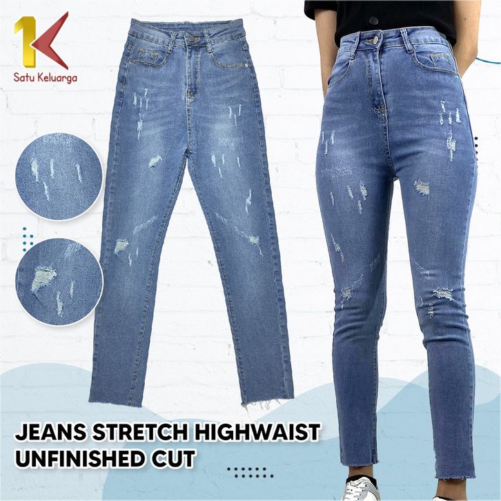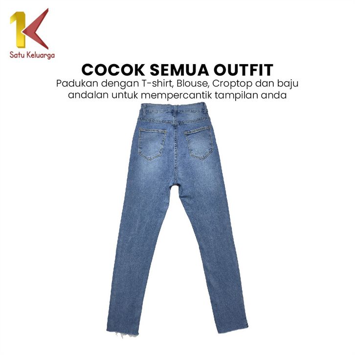 Celana Panjang Wanita Ripped Jeans Stretch Hight Waist Unfinished Cut Skinny Straight Fashion Celana Denim 1K P640