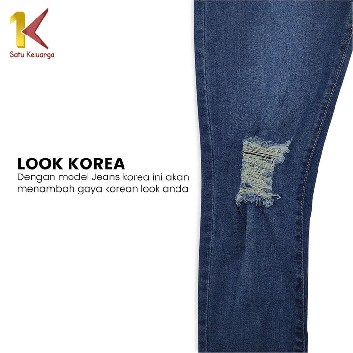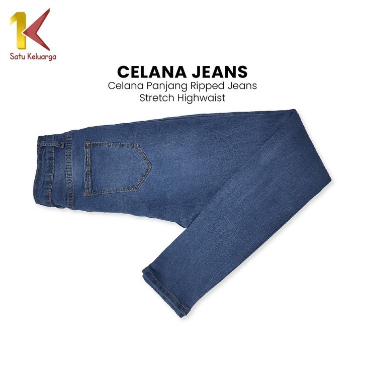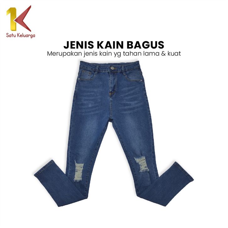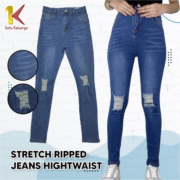Stretch Ripped Jeans Hightwaist Celana Panjang Ngaret Wanita Fashion Street Celana Denim Sobek 1K P542